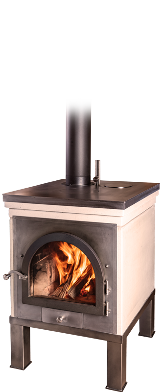 Küchenherd mit Stein-Backofen. Kombiniert schnelles Aufheizen mit Wärmespeicher.